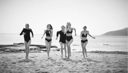 Οι πιο όμορφες γυναίκες της ελληνικής μόδας συγκεντρώθηκαν στην παραλία για μια ασπρόμαυρη φωτογράφηση.