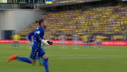 Jeremías Ledesma, Cádiz goalkeeper, runs with a defibrillator in hand to give it to the paramedics so that they can assist the fan who is decompensated. Respect! #CadizBarca pic.twitter.com/Li1tc4hMRI