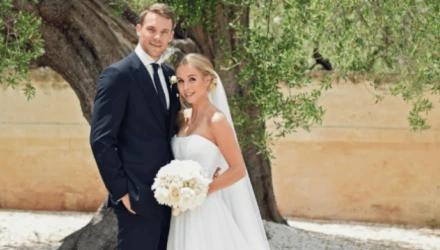 Ο τραυματισμός του Γερμανού τερματοφύλακα δεν του επέτρεψε να σταθεί δίπλα στην αγαπημένη του Νίνα Βάις χωρίς μια μικρή βοήθεια από τις πατερίτσες του. Δείτε παρακάτω φωτογραφίες από τη γαμήλια τελετή: