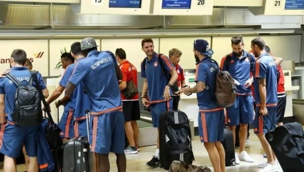Η αποστολή των νταμπλούχων Ελλάδας έφτασε γύρω στις 18:00 στη γειτονική χώρα και στη συνέχεια μεταφέρθηκε στο ξενοδοχείο! Εκεί, μάλιστα, περίμεναν τον Ολυμπιακό εκπλήξεις, δεδομένου ότι από τα μεγάφωνα ακουγόταν ο ύμνος των ερυθρόλευκων, ενώ υπήρχαν και πολλές ελληνικές σημαίες!