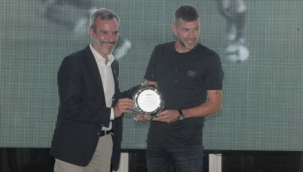 Ο Ουρουγουανός τεχνικός της Κ19 του ΠΑΟΚ που έδωσε το παρών στην εκδήλωση για την παρουσία του νέου προγράμματος του κορυφαίου ραδιοφωνικού σταθμού της Βορείου Ελλάδας, έδωσε ρέστα στις δηλώσεις κατά τη βράβευσή του.