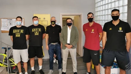 Ο κ. Αρβανίτης και τα στελέχη του ARIS Basketball Program (Αντώνης Ασημακόπουλος, Γιάννης Κουσούλης, Δημήτρης Μήτσικας, Κωνσταντίος Χατζής) έδωσαν στον κ. Σχοινά ένα βιβλίο της ιστορίας του Άρη, μία φανέλα της ομάδας μπάσκετ και μία μπάλα υπογεγραμμένη από τους καλαθοσφαιριστές και το προπονητικό επιτελείο της ανδρικής ομάδας μπάσκετ του συλλόγου.
