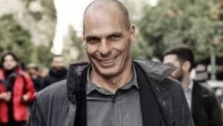 Οπως δείχνουν οι φωτογραφίες ο κ. Βαρουφάκης κάθεται σε τραπεζάκι και είναι φανερά απορροφημένος στον υπολογιστή του.