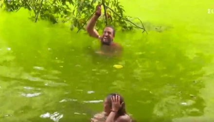Αυτό όμως δεν άντεξε το βάρος του με αποτέλεσμα να σπάσει και να βρεθούν και οι δύο ξανά στο νερό σε ένα από τα πιο αστεία στιγμιότυπα σε όλο το ριάλιτι.