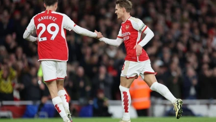 Το σκορ άνοιξε το στο 24ο λεπτό ο Όντεγκααρντ ενώ είκοσι λεπτά αργότερα με αυτογκόλ οι «κανονιέρηδες» σφράγισαν τη νίκη τους.