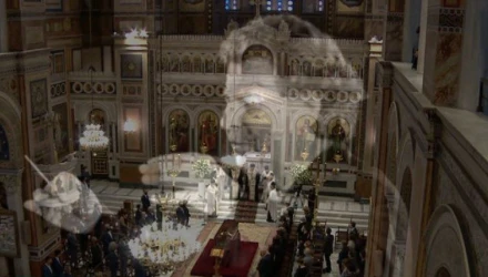 Η τελετή αποχαιρετισμού του κορυφαίου δημιουργού ξεκίνησε με τρισάγιο, χοροστατούντος του Αρχιεπισκόπου Αθηνών Ιερώνυμου.