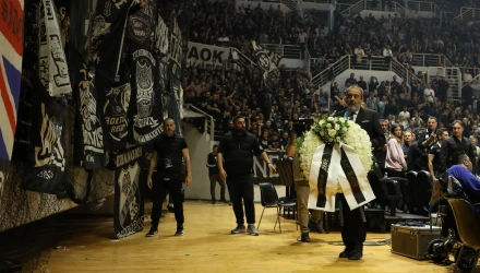 Συγκινησιακά φορτισμένη ατμόσφαιρα επικράτησε στο PAOK Sports Arena λίγο πριν το τζάμπολ του ντέρμπι του ΠΑΟΚ με τον Ηρακλή για τη Stoiximan GBL.