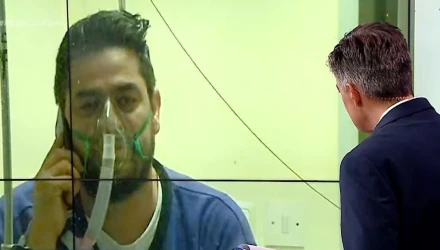 Βρισκόταν σε θάλαμο του ΑΧΕΠΑ με μόνη συντροφιά ένα τηλέφωνο και μια τηλεόραση αντιμετωπίζοντας τον κορωνοϊό. Στη ζωντανή σύνδεση του MEGA αντιλήφθηκε πως στο πλάνο βρίσκεται ο ειδικός θάλαμος του νοσοκομείο που νοσηλεύεται και με τα χέρια του έστειλε μηνύματα νίκης και αγάπης. Ο 42χρονος ασθενής συγκλονίζει μη χάνοντας στιγμή από την αισιοδοξία και τη δύναμή του.