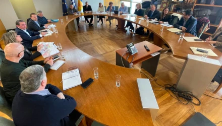 Σύσκεψη με την παρουσία του Υφυπουργού Υποδομών, Νίκου Ταχιάου και του Δημάρχου Θεσσαλονίκης, Στέλιου Αγγελούδη, πραγματοποιήθηκε σήμερα (25/1) στο Δημαρχείο, με αντικείμενο τη συνεργασία πάνω σε κοινά θέματα ενδιαφέροντος του Υπουργείου Υποδομών, του ΟΛΘ, του ΟΣΕ και της ΓΑΙΑΟΣΕ και με σημείο αναφοράς την εύρεση άμεσων λύσεων για την ανακούφιση του κυκλοφοριακού προβλήματος.