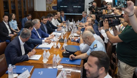 Δυο διαδοχικές συσκέψεις του Συντονιστικού Συμβουλίου Θεσσαλονίκης για το Fly Over, με αντικείμενο ρυθμίσεις άμεσης επέμβασης για τη διευκόλυνση της κυκλοφορίας των αυτοκινήτων στην περιφερειακή οδό σε περιπτώσεις έκτακτης ανάγκης, την απρόσκοπτη λειτουργία της αγοράς, αλλά και τo ζήτημα των φορτοεκφορτώσεων, συγκαλεί ο Υφυπουργός Εσωτερικών (Μακεδονίας-Θράκης) Κωνσταντίνος Π. Γκιουλέκας, στο ΥΜΑΘ την Πέμπτη, 8 Αυγούστου 2024.
