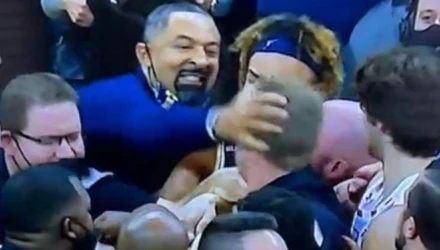 Αυτό εκνεύρισε τον προπονητή του Μίσιγκαν, Τζουάν Χάουαρντ. Ο δύο φορές πρωταθλητής του NBA άρχισε να μιλάει έντονα με τον ομόλογό του Γκρεγκ Γκαρντ και κάπου εκεί τα πράγματα ξέφυγαν.