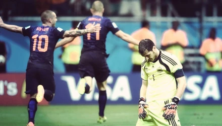 Η Ισπανία συνετρίβη από την Ολλανδία με 5-1 στην πρεμιέρα της στο 20ο Παγκόσμιο Κύπελλο, όπως ακριβώς είχε συμβεί και στο αντίστοιχο του 2010 με αν΄τιπαλο την Ελβετία (1-0). Μόνο που αυτή τη φορά, το εύρος της ήττας της είχε ιστορική σημασία.