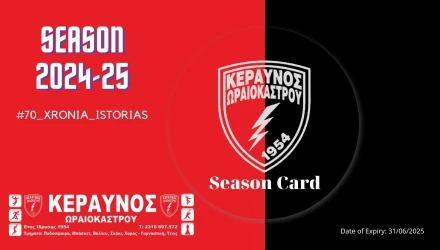 Στη διάθεση των φιλάθλων του Κεραυνού Ωραιοκάστρου είναι τα εισιτήρια διαρκείας για την αγωνιστική περίοδο 2024-2025, για το πρωτάθλημα και το Κύπελλο ΕΠΣΜ.
