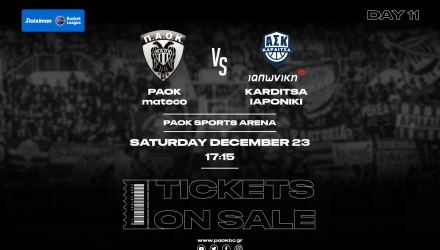Η ΚΑΕ ΠΑΟΚ mateco ανακοινώνει ότι ξεκίνησε η διάθεση των εισιτηρίων για τον αγώνα ΠΑΟΚ mateco – Καρδίτσα Ιαπωνική, που θα διεξαχθεί στο PAOK Sports Arena την Κυριακή 14 Απριλίου 2024 στις 20:15, για την 3ηαγωνιστική Play Out της Stoiximan Basket League. Η διάθεση των εισιτηρίων γίνεται από σήμερα ηλεκτρονικά και από το πρωί της Τρίτης (9/4) και από το PAOK Sports Arena.
