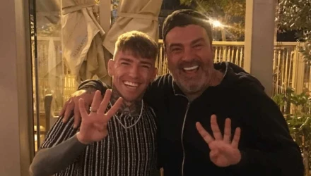 Ο ίδιος σε φωτογραφία που ανέβασε o φίλαθλος του ΠΑΟΚ Μαρίνος στο Instagram μαζί με τον παίκτη, κάνει την κίνηση τέσσερα με τα δάχτυλα σε μια στιγμή ικανοποίησης για τον θρίαμβο στο «Γ. Καραϊσκάκης» και τη δική του εμφάνιση.
