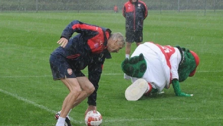 Το ξεκίνημα της Άρσεναλ στην Πρέμιερ Λιγκ μπορεί να μην ήταν το ιδανικό όμως αυτό δεν εμποδίζει τον Αρσέν Βενγκέρ να χαλαρώνει τους παίκτες του κατά τη διάρκεια των προπονήσεων.