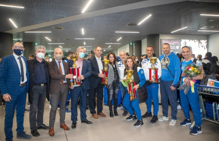 Οι αθλητές και οι αθλήτριες πνίγηκαν στις αγκαλιές γονέων, συγγενών και φίλων που θέλησαν να τους συγχαρούν για την επιτυχία τους. Στο αεροδρόμιο βρέθηκαν και ο Δήμαρχος Θέρμης, Θόδωρος Παπαδόπουλος, ο Αντιδήμαρχος Αθλητισμού του Δήμου Θεσσαλονίκης, Νικος Ζεϊμπέκης και του Θερμαϊκού, Γιώργος Τσαμασλής καθώς και η Αντιπεριφερειάρχης, Βούλα Πατουλίδου.