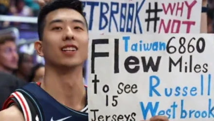 Ο φαν του Ουέστμπρουκ ταξίδεψε από την Ταϊβάν, 6.860 μίλια, για να βρεθεί στις ΗΠΑ και δει από κοντά αγώνα του αγαπημένου του παίκτη, αλλά δεν ήταν μόνο αυτό, καθώς φόρεσε όλες τις φανέλες των ομάδων που έχει αγωνιστεί ο Αμερικανός γκαρντ.