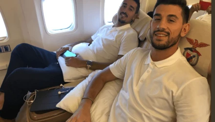 Στο αεροπλάνο βρίσκεται η αποστολή της Μπενφίκα που έρχεται στη Θεσσαλονίκη για τον αγώνα της ρεβάνς με τον ΠΑΟΚ στην Τούμπα (22:00).