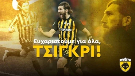 «Η ΠΑΕ ΑΕΚ ανακοινώνει την ολοκλήρωση της συνεργασίας της με τον διεθνή Ουκρανό αμυντικό Ντμίτρο Τσιγκρίνσκι και τον ευχαριστεί θερμά για την προσφορά του στον σύλλογο στα πέντε χρόνια που αγωνίστηκε σε αυτόν.