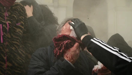 Όπως φαίνεται στη φωτογραφία που ανάρτησε στα social media ο Μάριος Λώλος, πρόκειται για ντοκουμέντο από τον τραυματισμό του φωτορεπόρτερ του Αθηναϊκού και Μακεδονικού Πρακτορείου Ειδήσεων, Ορέστη Παναγιώτου, που τρααυματίστηκε στο κεφάλι από χειροβομβίδα κρότου-λάμψης, ενώ κάλυπτε τα επεισόδια που εκτυλίχθηκαν στο Σύνταγμα.