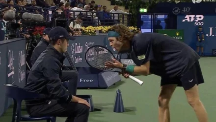 Άδοξα ολοκληρώθηκε ο πρώτος, χρονικά, ημιτελικός στο Ντουμπάι ανάμεσα στον Αντρέι Ρούμπλεφ και τον Αλεξάντερ Μπούμπλικ, καθώς δεν κρίθηκε (ακριβώς) στο κορτ, αλλά στα... πέριξ αυτού.