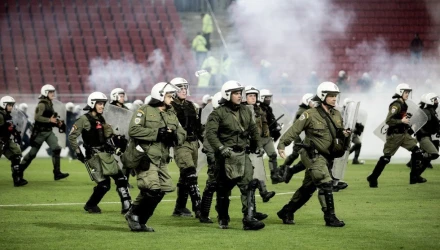 Τέσσερις αστυνομικοί τραυματίστηκαν στα επεισόδια που σημειώθηκαν στο παιχνίδι του Ολυμπιακού με την ΑΕΚ στο «Γεώργιος Καραϊσκάκης» για τα πλέι οφ της Super League.