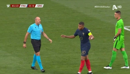 Η Γαλλία ζήτησε και τέταρτο πέναλτι στον αγώνα με την Εθνική μας ομάδα. Πρωταγωνιστές και σε αυτή τη φάση ήταν οι Μπαπέ και Μπάλντοκ. Ο Λαόθ δεν συγκινήθηκε παρά τις έντονες διαμαρτυρίες του σταρ της Παρί Σεν Ζερμέν.