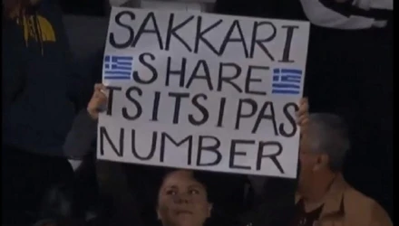 «Σάκκαρη, σε παρακαλώ δώσε μου το τηλέφωνο του Τσιτσιπά», έγραφε το πλακάτ που κρατούσε στο χέρι της η fan του κορυφαίου Έλληνα τενίστα.