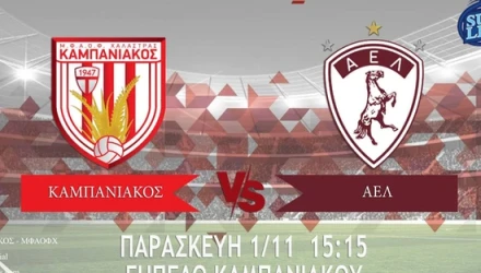 Δεύτερο συνεχόμενο εντός έδρας παιχνίδι για τον Καμπανιακό την Παρασκευή στις 15.15 με αντίπαλο την πρωτοπόρο της Super League 2 ΑΕΛ, στο πλαίσιο της έβδομης αγωνιστικής του πρωταθλήματος.