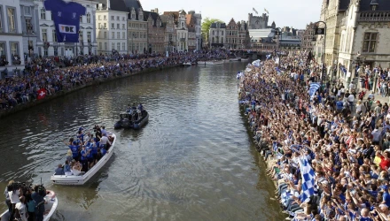Μια ολόκληρη πόλη η Γάνδη, στο βορρά της χώρας, και με πληθυσμό περίπου 600.000 κατοίκους αποτελεί μια μεθυσμένη πολιτεία από την περασμένη εβδομάδα, αφού η ομάδα που την εκπροσωπεί κατέκτησε για πρώτη φορά στην ιστορία της το πρωτάθλημα Βελγίου. Μία βιομηχανική, αλλά παράλληλα και όμορφη πόλη, λόγω των ποταμών που τη διασχίζουν, αλλά και των πολλών παραδοσιακών κτιρίων στο κέντρο της, είχε κάθε λόγο να φορέσει τα γιορτινά της.