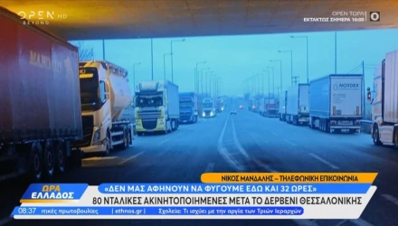Θεσσαλονίκη-Ακινητοποιημένες νταλίκες στο Δερβένι: «Δεν μας αφήνουν να φύγουμε»