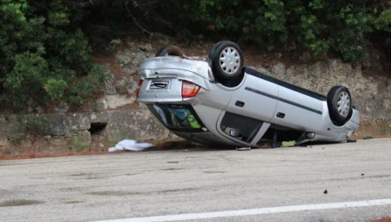 ΙΧ αυτοκίνητο, το οποίο κινούνταν με κατεύθυνση προς τα ανατολικά εξετράπη της πορείας του για άγνωστους λόγους και ανατράπηκε λίγο πριν την έξοδο για τα Κωνσταντινουπολίτικα.