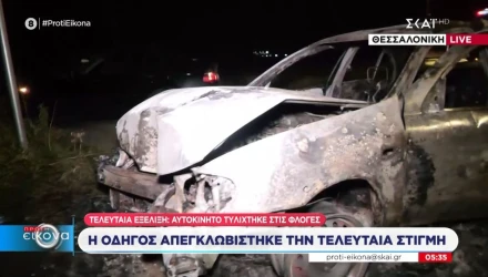 Θεσσαλονίκη: Αυτοκίνητο «καρφώθηκε» σε κολώνα και τυλίχθηκε στις φλόγες