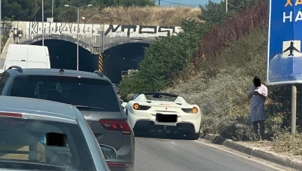 Σύμφωνα με πληροφορίες από τοπικά μέσα ενημέρωσης, αλλά και από τα social media, ο οδηγός της λευκής Ferrari 488 Spider σταμάτησε στην άκρη του δρόμου αργά το μεσημέρι της Τρίτης 05/07, λίγο πριν το τούνελ στα Κωνσταντινουπολίτικα.