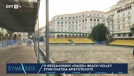 Η κεντρική πλατεία της Θεσσαλονίκης, η Πλατεία Αριστοτέλους, έχει μετατραπεί σ’ ένα μεγάλο γήπεδο beach volley με τόνους άμμου που μεταφέρθηκαν στο πλαίσιο του Πανελλήνιου Πρωταθλήματος beach volley.