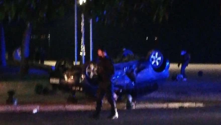 Το όχημα διέλυσε του πασάλους στο δεξί μέρος του δρόμου, αναποδογύρισε και βρέθηκε πάνω το πεζοδρόμιο.