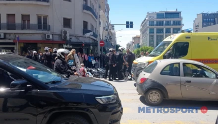 Από τη σύγκρουση τραυματίστηκε ο αστυνομικός της τροχαίας, ο οποίος μεταφέρθηκε στο 424 Στρατιωτικό Νοσοκομείο, φέροντας ελαφρά τραύματα.