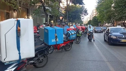Θεσσαλονίκη: Μοτοπορεία διανομέων για τον θάνατο του συναδέλφου τους σε τροχαίο