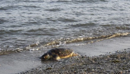Μία θαλάσσια χελώνα καρέτα-καρέτα εντόπισαν οι λιμενικές αρχές της Θεσσαλονίκης το βράδυ της Κυριακής (3/5) στην παραλία της Καλαμαριάς.