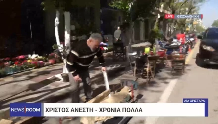 Με σύμμαχο τον εξαιρετικό καιρό, οι Θεσσαλονικείς επιχειρηματίες που εργάζονται σήμερα, ανήμερα του Πάσχα, συνδυάζουν δουλειά και σούβλισμα.