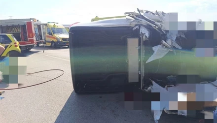 Συνελήφθη ο οδηγός του Ι.Χ.Φορτηγού με ρυμουλκούμενο.