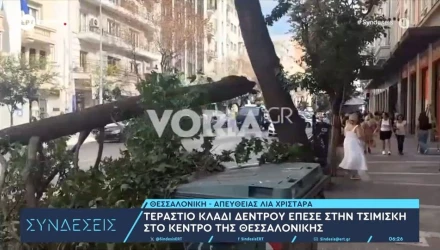 Αναστάτωση επικράτησε τη Δευτέρα (8/9) στην οδό Τσιμισκή, στο κέντρο της Θεσσαλονίκης, όταν τεράστιο μέρος δέντρου έπεσε στο οδόστρωμα στο ύψος της Στοάς Χιρς.0