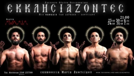 «Άγνωστοι μαύρισαν και πάλι την αφίσα της παράστασης "Εκκλησιάζοντες" την Δευτέρα 30/10 , λίγες ώρες πριν την προγραμματισμένη διαμαρτυρία παραθρησκευτικών και εθνικιστικών οργανώσεων. Η συγκέντρωση έχει προγραμματιστεί για σήμερα στις 19.30 με σκοπό τη μη πραγματοποίηση της παράστασης.