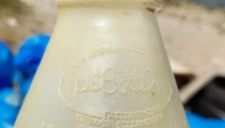 Πλαστικό μπουκάλι, γνωστής βιομηχανίας γάλακτος, από το 1980 βρέθηκε στην περιοχή της Καλαμαριάς, στη Θεσσαλονίκη, από την εθελοντική ομάδα The Cleaningans, που καθαρίζει την πόλη.