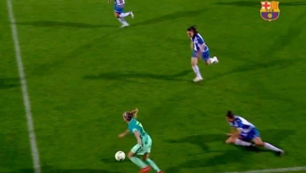 Η 23χρονη διεθνής αθλήτρια στο ντέρμπι της Μπαρτσελόνα με την Εσπανιόλ ντρίμπλαρε έξι αντιπάλους της, με την τελευταία να την πετά στο έδαφος αλλά εκείνη να ξανασηκώνεται και να στέλνει τη μπάλα στα δίχτυα με ένα όμορφο πλασέ.