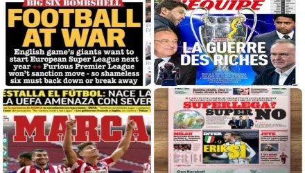 Η είδηση της ίδρυσης της European Super League απασχολεί σχεδόν όλες τις κορυφαίες αθλητικές εφημερίδες της Ευρώπης.