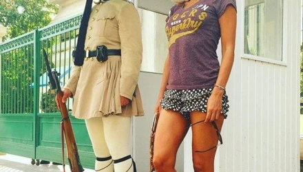 Δεν είναι άλλη από τη Δήμητρα Ματσούκα, που πόζαρε δίπλα στον τσολιά, την απαθανάτισε φίλος της και ανάρτησε τη φωτογραφία στο Instargam.