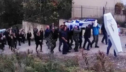 Τυλιγμένη με την ελληνική σημαία η σορός του Κατσίφα (ΦΩΤΟ)