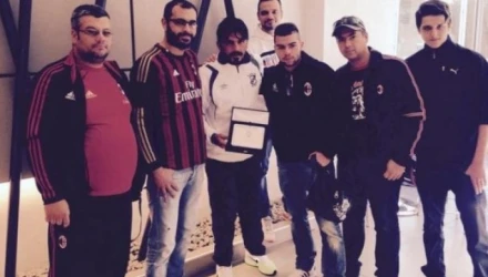 Την ευκαιρία της παρουσίας του Ιταλού δεν έχασαν οι φίλοι της Μίλαν που τον τίμησαν και αντάλαξαν μερικές κουβέντες μαζί του.